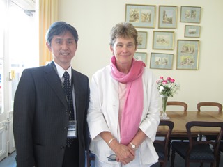 Malvern St. James は、元ホテルだった建物を改築した素敵な校舎の学校です。イギリスらしい緑の広大な敷地が印象的でした。学校近くのご家庭にホームステイして通学しますが、学校の近くにある寮に週末のみ泊まることも可能です。訪問させていただいた日には、Headmaster(校長先生),Mrs Patricia Woodhouseとも直接お会いしてお話をしました。声楽がご専門で、大変気品のある素敵な女性でした。“Our principal, Ms. Tanibayashi can dance salsa.” とお伝えしたところ、“Lovely!”と、微笑んでくださいました。何人かの先生方ともお話をしましたが、私が持参した本校のポスターとパンフに興味を持ち、皆さん大変気に入ってくれました。