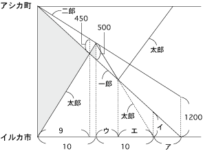 ですから、太郎がイルカ市につくまでにかかる時間は、