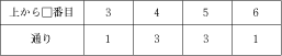 <2>が上から4番目。<2>の下に<1>、<3>、<4>、<5>のうちのどの2つがくるかで、4×3÷2=6(通り)。