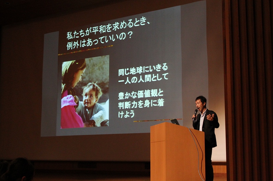 11月9日(金)の中学1年生の道徳の授業では、JVC日本ボランティアセンターで事務局長をされていた清水俊弘先生に「世界の紛争と私たち」というテーマで講演をしていただきました。